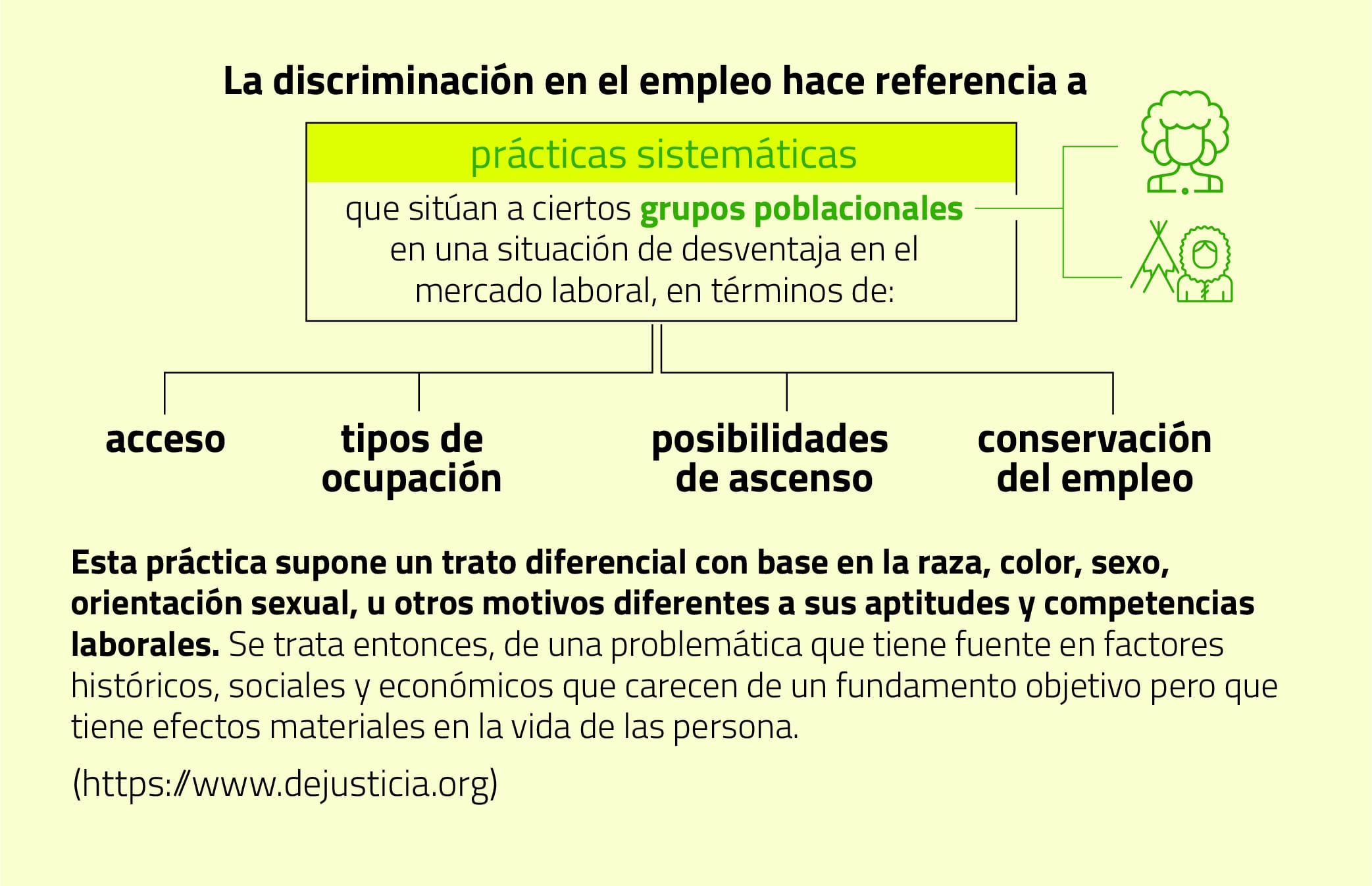Discriminación: Trato diferenciado y desigual hacia una persona o un grupo en diversos ámbitos de la vida social en función de una o varias categorías.